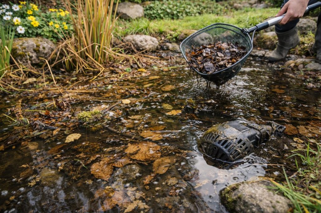 In dieser Phase lässt sich der Teich am schonendsten reinigen, ohne das biologische Gleichgewicht unnötig zu stören.